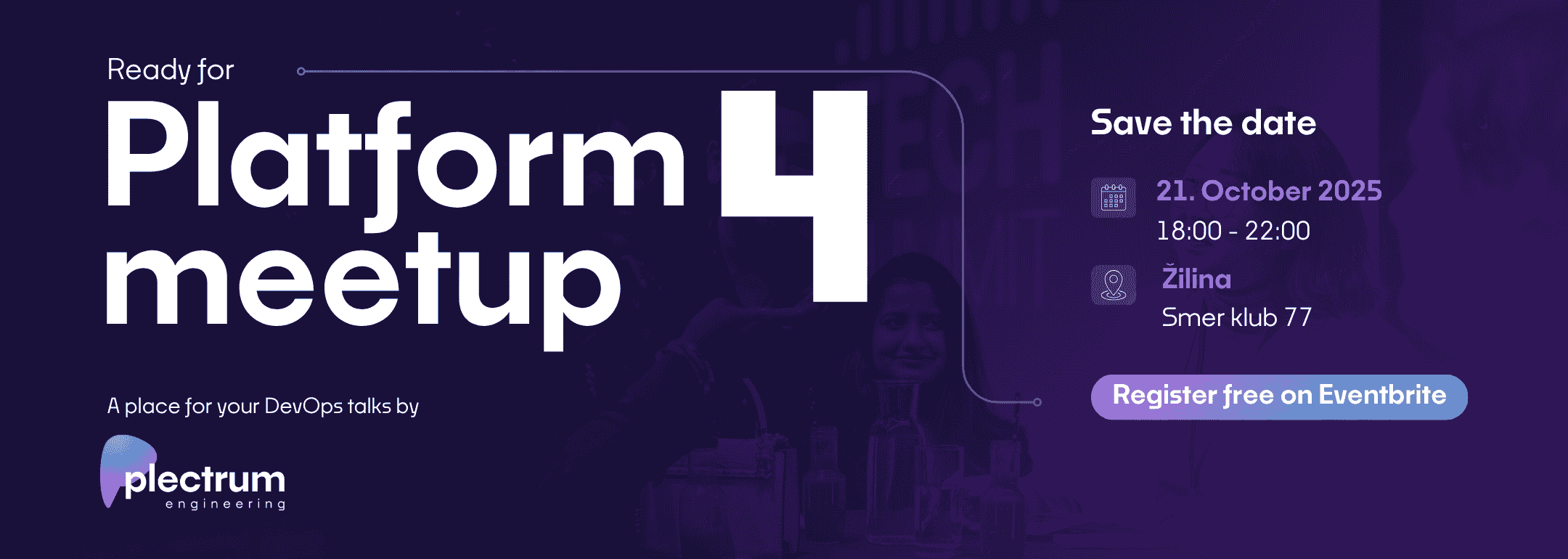 Let's join our second continuation of Platform meetup focused on platform engineering. Once again, you'll have the opportunity to meet talented engineers from various companies: the successful game development studio Pixel Federation, rising star among startups CloudTalk, our Slovak expert in fintech Vacuumlabs, and our own company Plectrum Engineering.